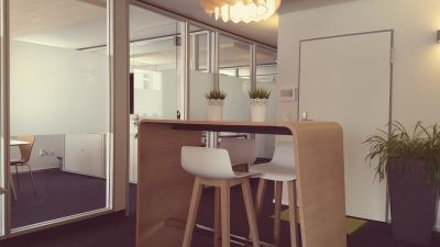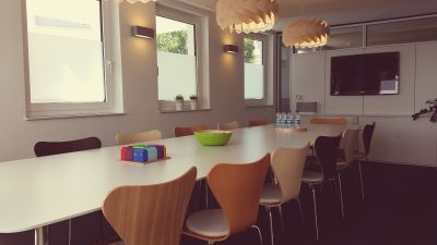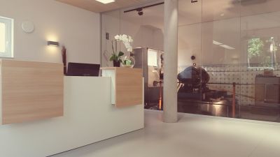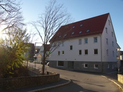 Mit einem Energieeffizienzwert von 70 steht das neue alte E-Werk energetisch überdurchschnittlich gut da. Die Geschäftsräume werden von der Firma mezger haus genutzt und sind modern gestaltet und dank Glaswänden kann das Tageslicht optimal ausgenutzt werden. Im zweiten Obergeschoss des Hauses entstanden zwei 3-Zimmer-Wohnungen, im Dachgeschoss zwei Maisonettewohnungen. Ganz oben auf dem Dach befindet sich eine Solarstromanlage mit 14,5 Kilowatt Peak-Leistung. Somit wird im alten E-Werk auch tatsächlich wieder Strom erzeugt. Versorgt werden damit die Geschäftsräume. Darüber hinaus wird mittels Pelletheizung Fernwärme für das neue Nachbarhaus, Nummer 35/1, generiert. (Quelle Schwäbisches Tagblatt)